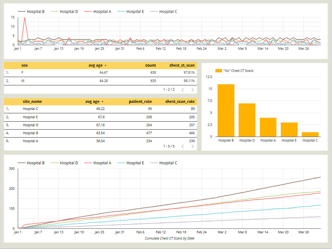 Hospital B diagnoses PE consistently at a higher rate throughout Q1 2022